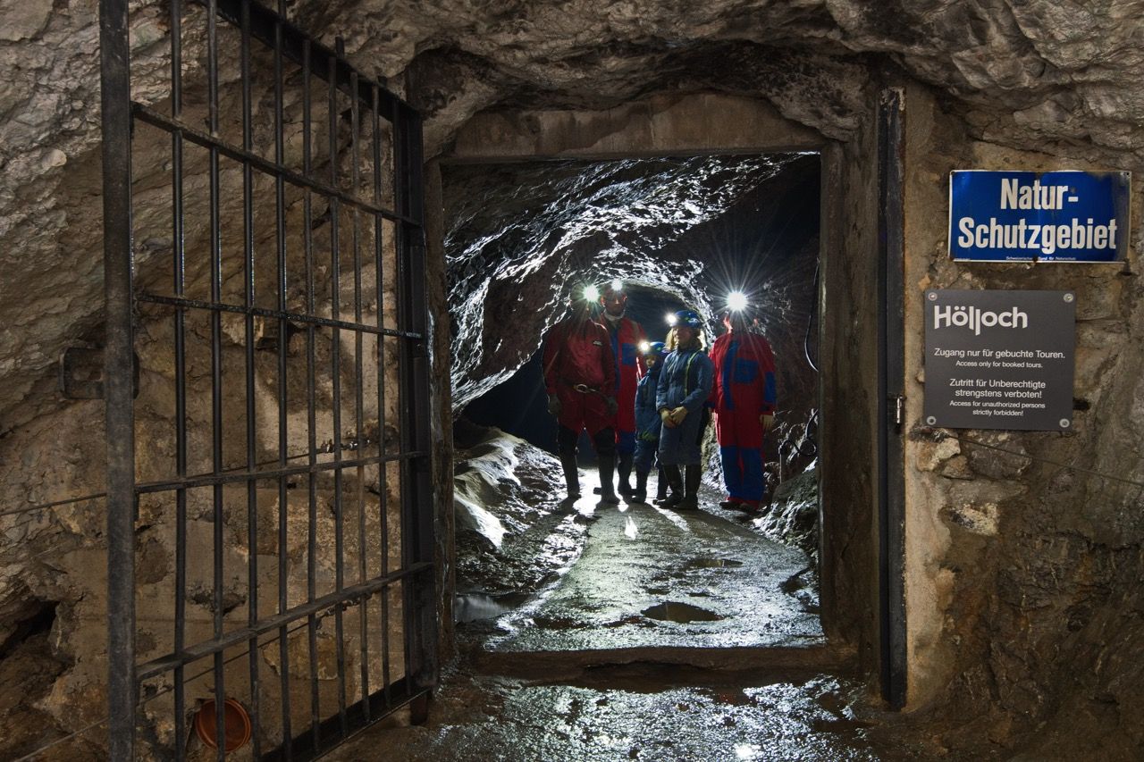 Das Hölloch im Muotathal im Kanton Schwyz zählt zu den grössten Höhlensystemen der Welt mit über 200 Kilometern erforschten Gängen. Die Höhle besteht aus verschiedenen Abschnitten mit Felsformationen, Kammern und schmalen Verbindungen. Die Temperatur liegt ganzjährig bei etwa 6 °C.