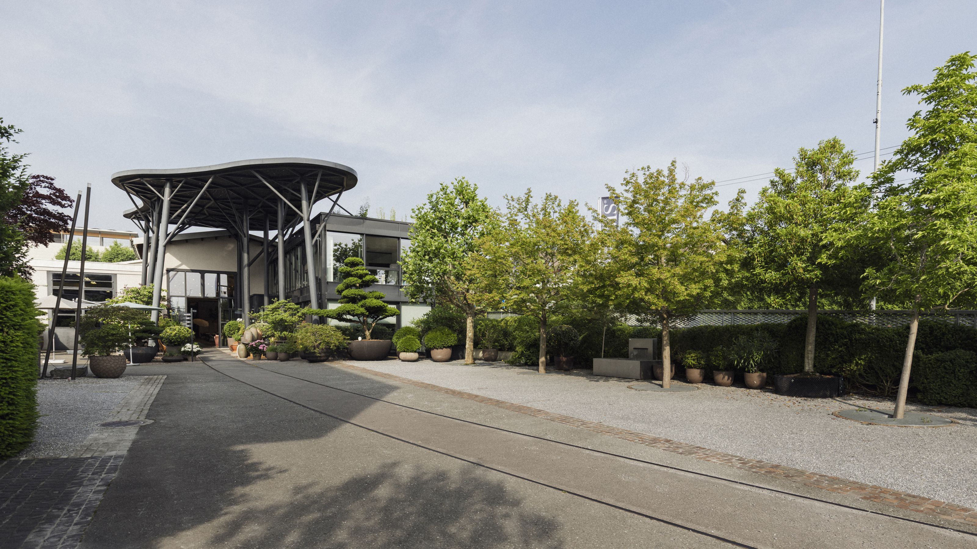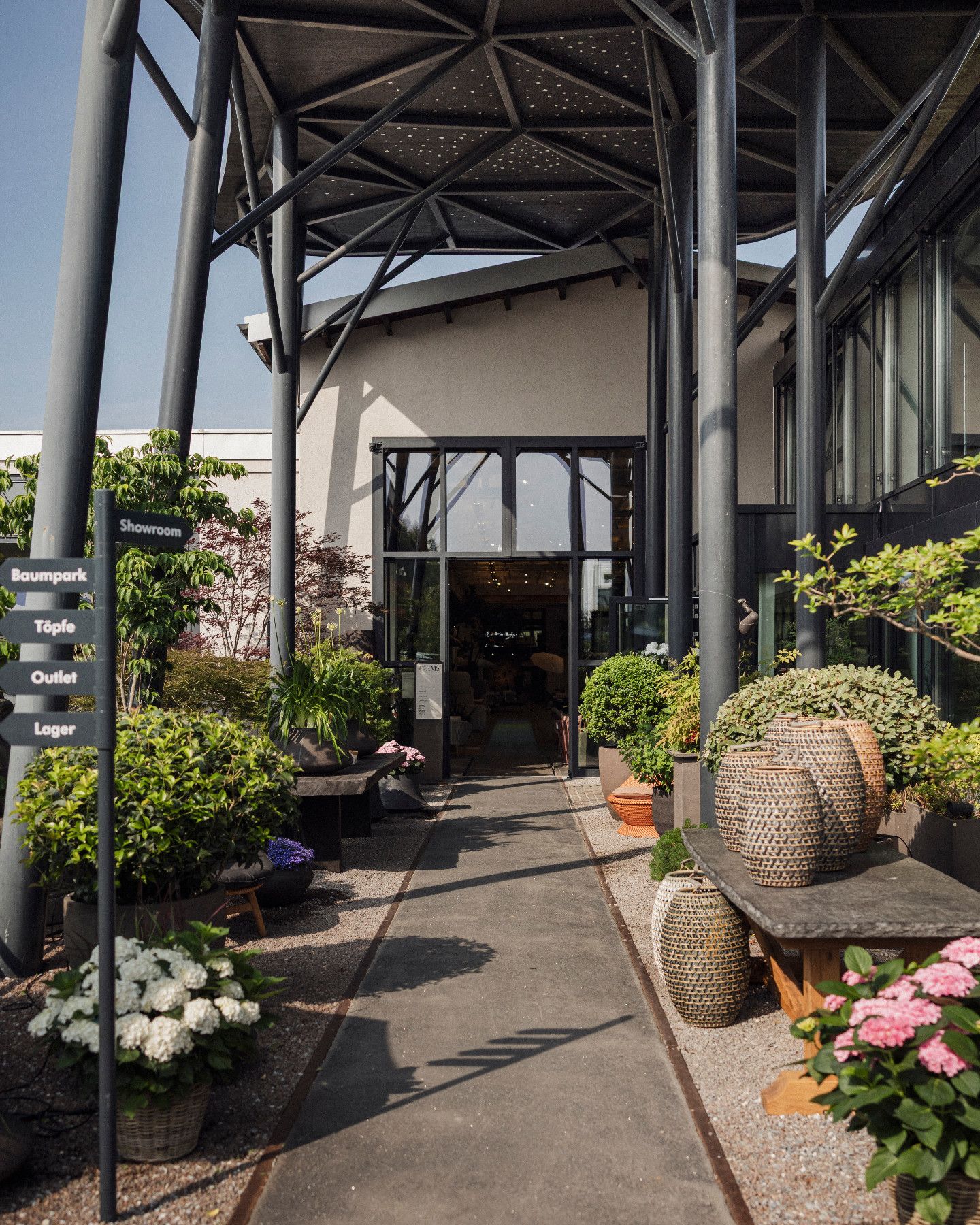 The former machine factory now houses a showroom for high-quality garden furniture collections. The exhibition also includes a large outdoor area with over 2,000 shrubs, ponza trees, and fountains spread across a spacious site.