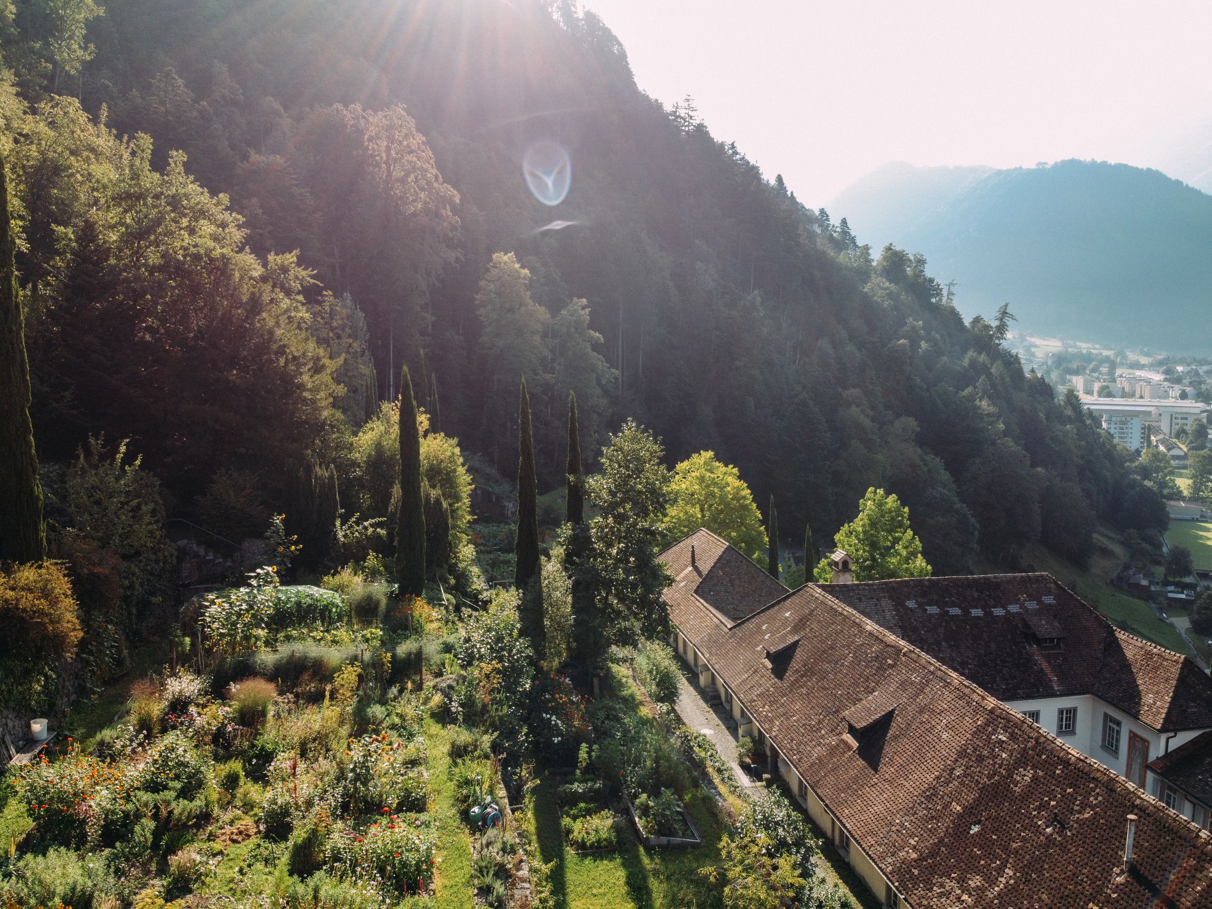 The Altdorf Cultural Monastery consists of historic monastery buildings with event rooms, a monastery church, and an open garden with a café. The complex is used for seminars, concerts, exhibitions, and private events.
